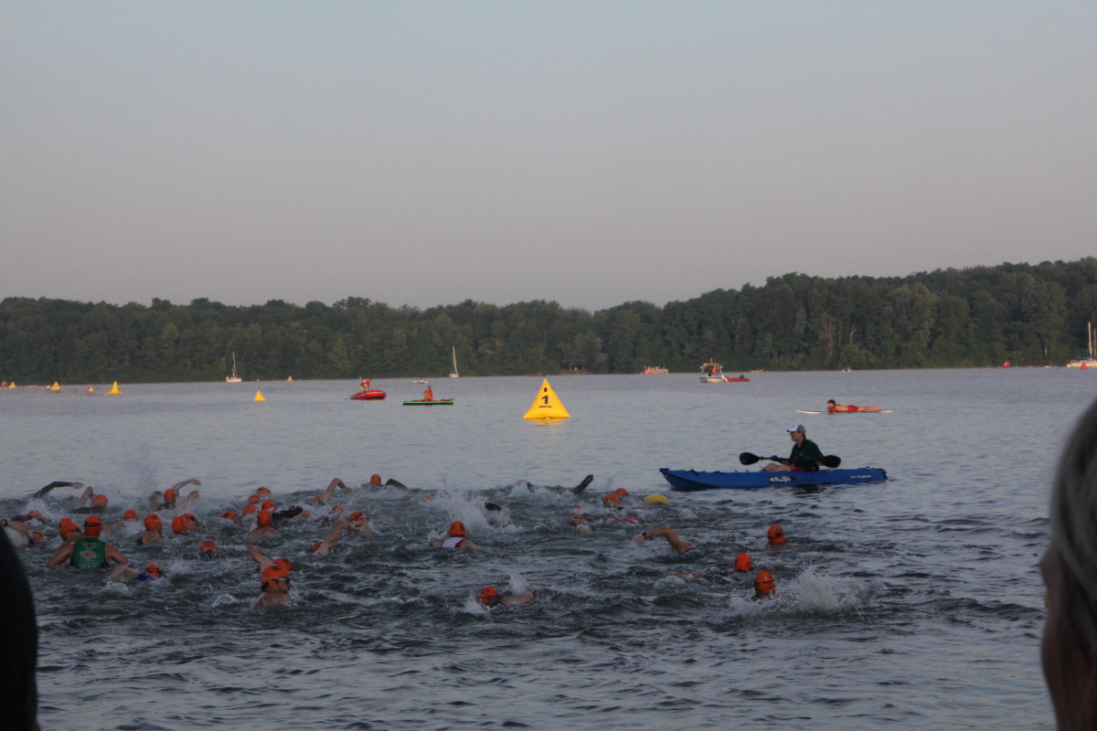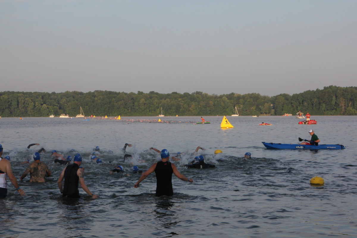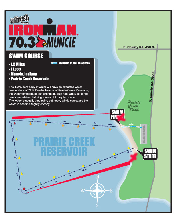 I’m always fascinated by the swim portion of triathlons and Ironman 70.3 Muncie is no different. It may seem like a typical lake swim, but it’s a little trickier than you may imagine because of the shape and the sighting.