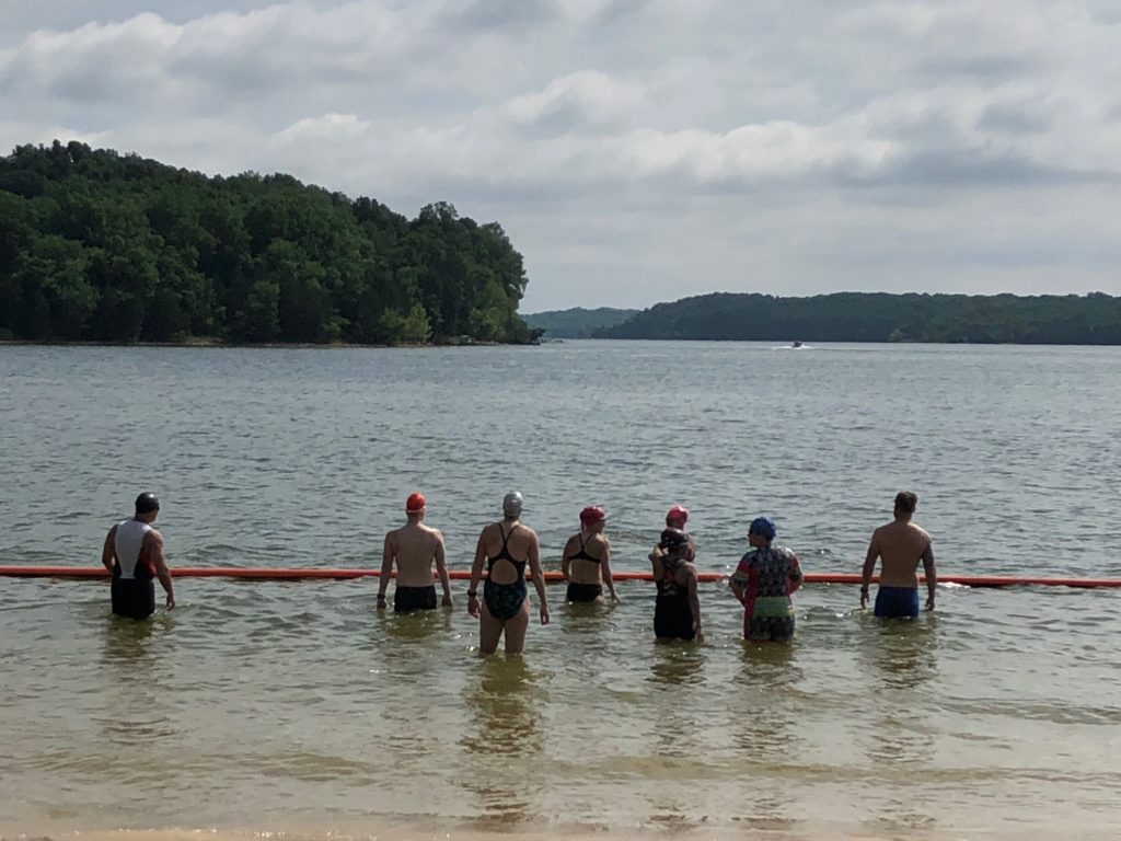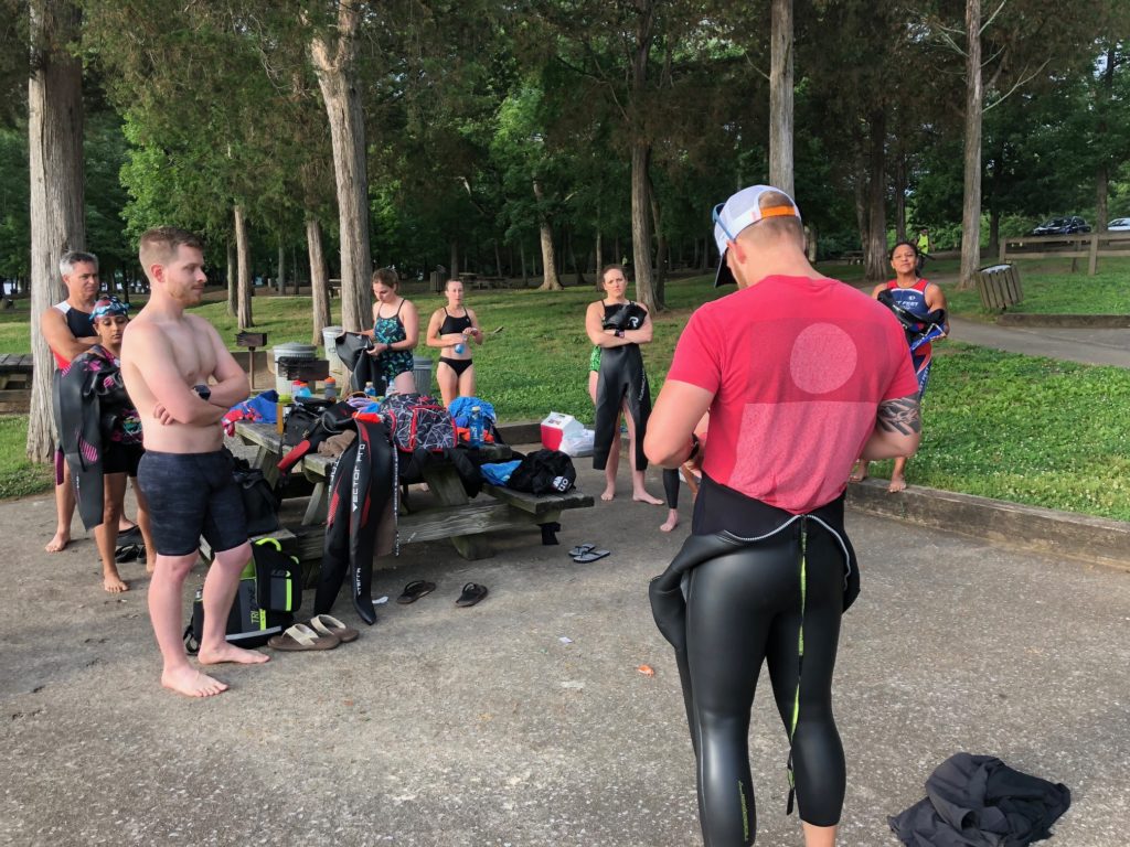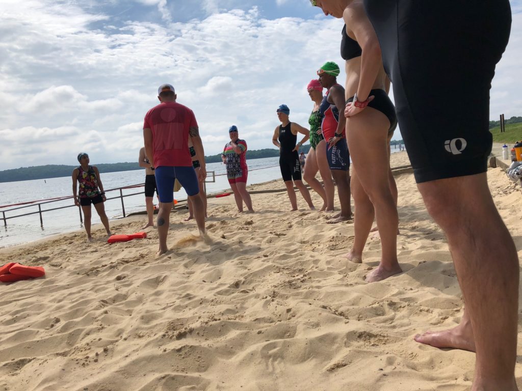 After instruction, we hit the lake for some longer swimming and relays to implement what everyone has learned. At the end we recap and practice swim techniques while executing pack swims and cornering buoys.