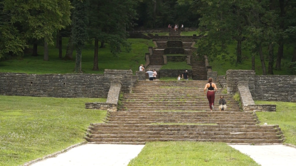 I think that, for some reason, not living in one of those mansions made me want to prove something, so as I re-entered the park, I ran directly at the stairs. As I did, I was saying strange things like, “uh oh,” and “look out!” to anyone who would listen. Instead of going back to the cars, I scaled the Roman-Ruin-Like staircase and ascended to the heavens. I felt surprisingly strong as I screamed back, “Who’s with me!” and “Let’s Do it!” I’m pretty sure no one even acknowledged me or thought I was losing my mind so I barreled up the steps alone, with no mansion to speak of, but possibly a greater reward waiting at the top.